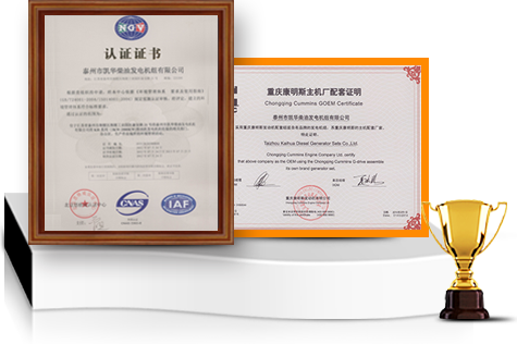 發(fā)電機組廠家凱華公司已先后通過ISO9001質(zhì)量認證、泰爾認證、ISO14001-2001環(huán)境管理體系認證、GB/T28001-2001職業(yè)健康安全管理體系認證,歐盟CE認證、SGS認證等。